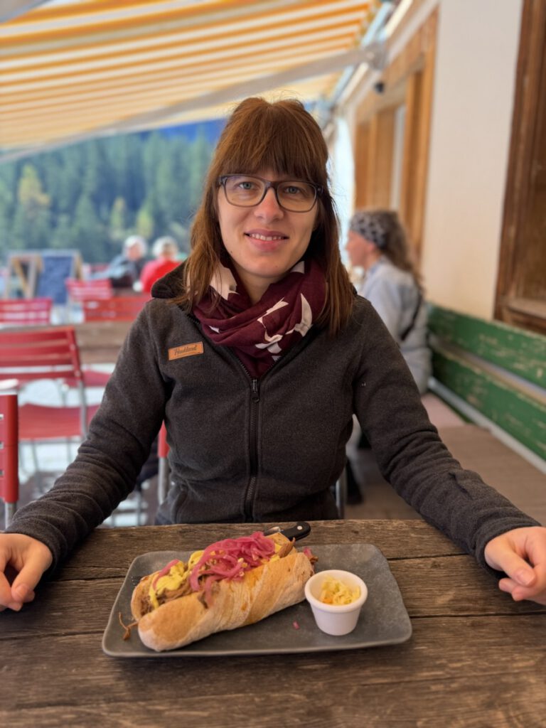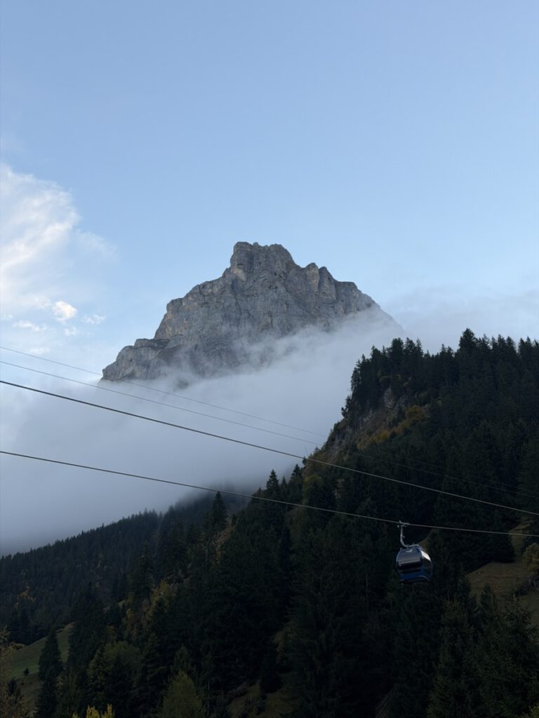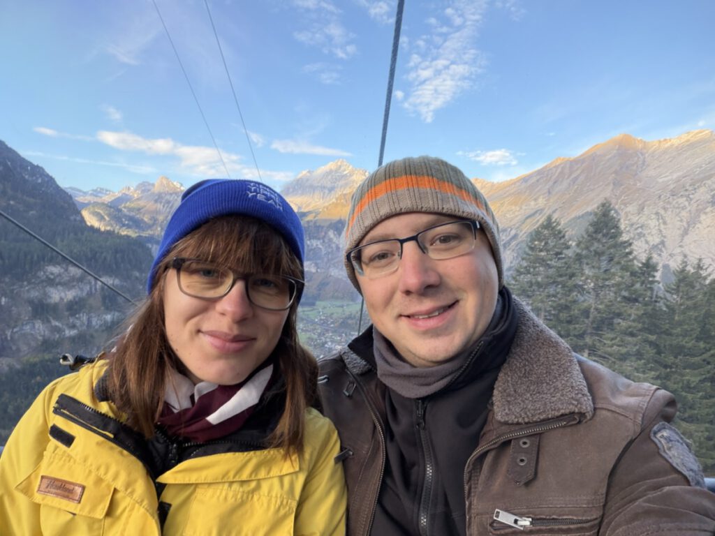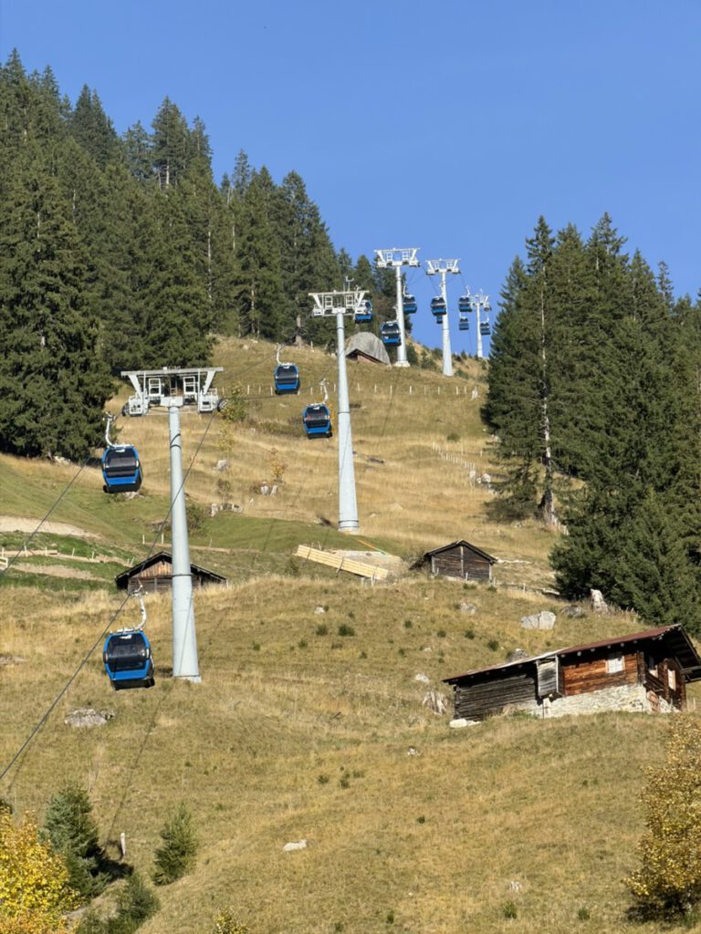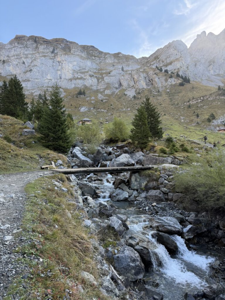 09.10.2025 – Tag 2: Nachdem wir gestern frühzeitig das Licht ausgemacht hatten zum Schlafen, sind wir heute auch früh aufgewacht. Um 7:30 Uhr sind wir aufgestanden, haben unser Frühstück an der Rezeption abgeholt sowie unseren Aufenthalt bezahlt. Gegen 8:45 Uhr nahmen wir direkt eine Gondel hoch auf den Berg, um dann zum Oeschinensee zu gehen. So früh war zum Glück noch nicht allzuviel los. Oben angekommen hatten wir ca. 30 Minuten Fußweg bis wir den See erreichten. Dort gab es eine Berghütte und die Möglichkeit sich ein Boot zu mieten, um auf den See rauszufahren. In dem See konnte man scheinbar Fische angeln. Wir gingen den Rundweg, ein Schotterweg, am Rande des Sees entlang. Das Wasser vom See war noch ganz glatt und still, die Sonne lugte bereits etwas über die Berge und erleuchtete nach und nach immer mehr von dem Bergsee in Sonnenlicht. Den „normalen“ Weg am See hatten wir recht schnell hinter uns gebracht. Es gab noch einen Weg der etwas weiter hinauf führte und zum wandern einlud. Insbesondere die ersten Meter gingen steil bergauf. Der Weg war verhältnismäßig gut angelegt, aber sehr schotterig. So wanderten wir einige Zeit entlang. Wenn man im Schatten der Berge war und stehen blieb und kurz die Aussicht zu genießen hatten die Sonnenstrahlen einen auch schon bald wieder eingeholt. Wir gingen den Weg nicht bis zum Schluss und drehten irgendwann wieder um. Es war sonst wohl eine Wanderung von ca. 4 Stunden. Auf dem Rückweg zur Berghütte, wo wir uns etwas zu Essen als Stärkung holten, konnten wir zweimal ein dunkelbraunes Eichhörnchen beobachten. Es waren viele Asiaten unterwegs. Auch ein Pärchen mit Fotograf, die in ihrem Hochzeitsdress Fotos gemacht haben. Wir haben uns nicht lange dort aufgehalten und gingen zurück zur Bergbahnstation. Der Weg dorthin ging wieder einige Meter bergauf. An der Bergstation genossen wir bei einem kleinen Eis noch ein wenig die Aussicht aufs Tal und fuhren wieder bergab.