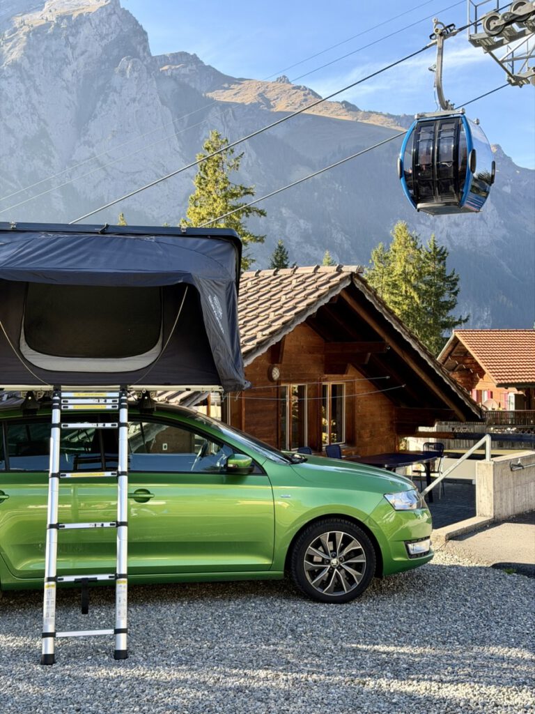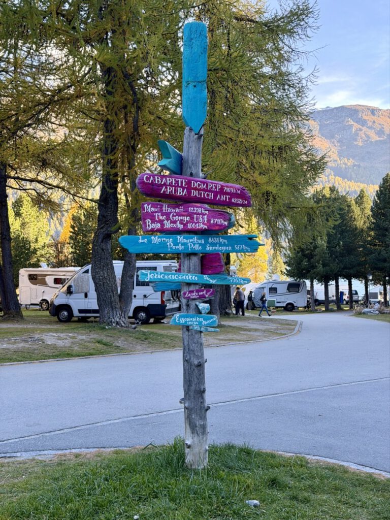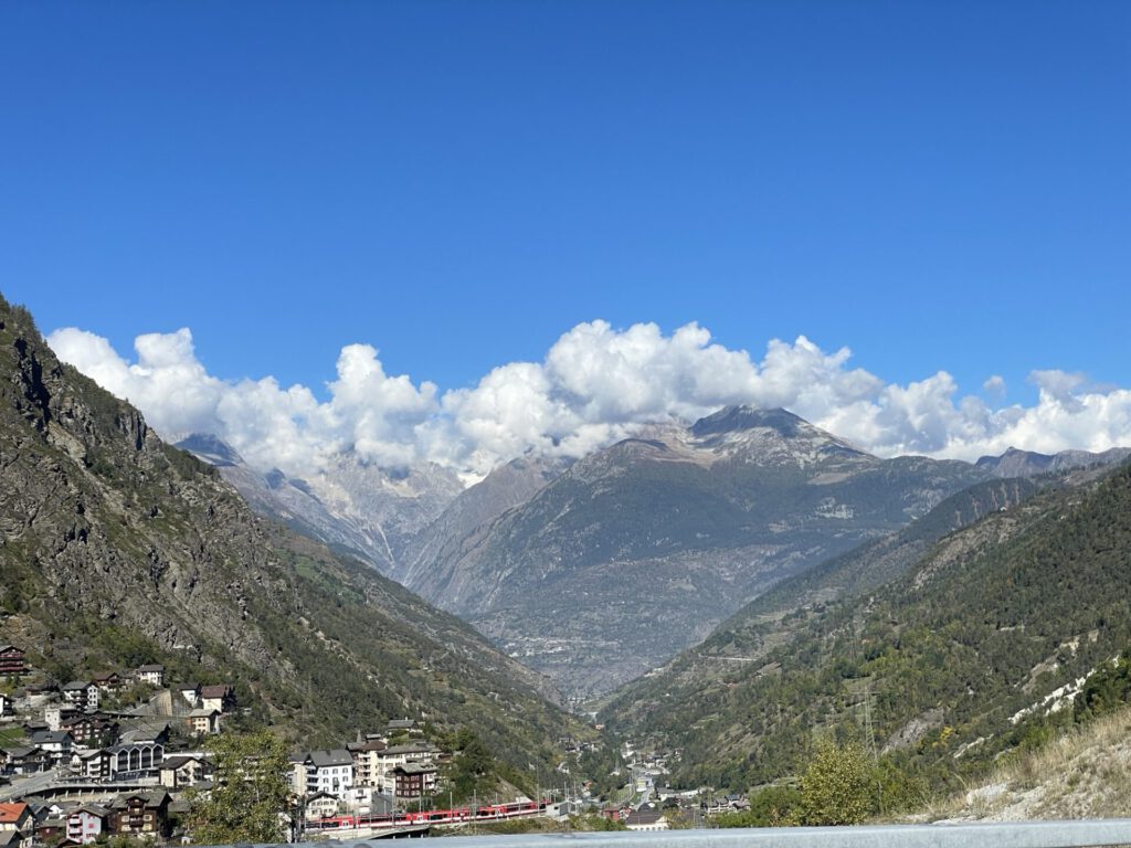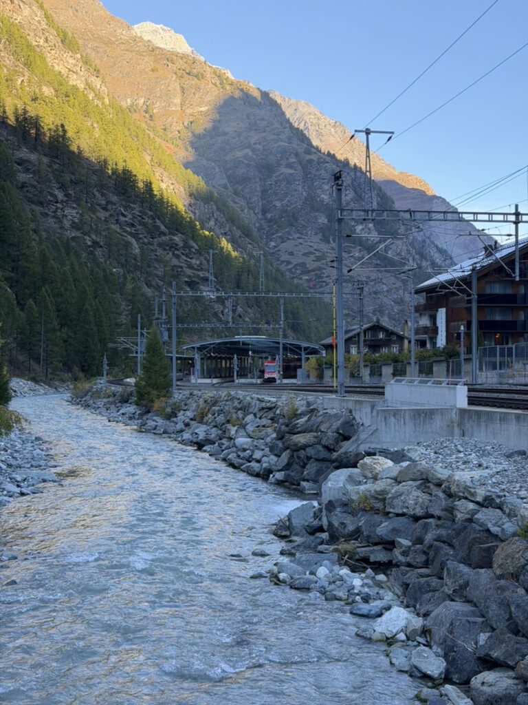 Wir setzten uns ins Auto und machten uns auf den Weg zu unserem nächsten Ziel. Das Matterhorn im Kanton Wallis hatten wir uns ausgeguckt. Um den Weg dorthin schneller zu bestreiten als in 4 Stunden einmal um die Berge herum zu fahren, nahmen wir den Autozug, der uns innerhalb von 15 Minuten für 15 Kilometer durch den Berg nach Goppenstein brachte. Es war für uns das Erste mal, dass wir Autozug gefahren sind. Wir schafften es tatsächlich noch den Zug um 12:43 Uhr zu bekommen, so wie einige andere es auch versucht hatten, die etwas spät dran waren. Somit dauerte unsere Fahrt zum Campingplatz Alphubel in der Ortschaft Täsch nur 1,5 Stunden und wir kamen gegen 14 Uhr an. Es war wieder sonnigstes Wetter bei 15-20 Grad je nach Höhenlage. Die Ortschaft Täsch ist die letzte die man mit dem Auto anfahren kann, wenn man zum Matterhorn möchte. Wir hielten noch mal kurz beim Coop an und besorgten uns etwas zum Abendessen. Nudeln mit Tomatensauce und ein bisschen Zucchini und Paprika reingeschnibbelt. Die Reste wollten wir für unsere morgige Wanderung als Proviant mitnehmen. Die Rezeption vom Campingplatz war jetzt in  der Nebensaison nur noch von 8-11 Uhr vormittags besetzt. Es standen Schilder, dass man sich einfach einen Platz aussuchen kann und sich online Anmelden soll. Alternativ konnte man sich am nächsten Tag an der Rezeption melden. Nachdem wir uns aufgebaut hatten, machten wir ein kurzes Nachmittagspäuschen. Im Anschluss packten wir die Sachen für den morgigen Ausflug, recherchierten die letzten Infos die wir benötigten und aßen zum Abendbrot. Laut meiner Fotografen-Wetter-App sollte es morgen früh Neuschnee geben. Vermutlich nur in den höheren Lagen. Eigentlich war es quasi wolkenfrei. Da frage ich mich wie Schnee fallen kann. Wir werden sehen. Wir gingen wieder früh zu Bett, um fit für die Eindrücke des nächsten Tages zu sein.