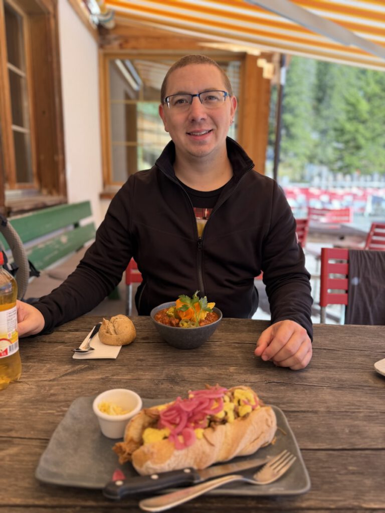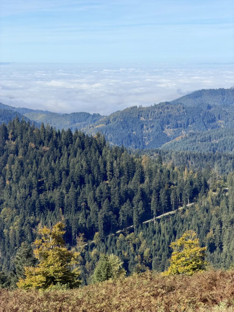 08.10.2025 – Tag 1: David war gestern um 18:30 Uhr bei mir im Schwarzwald angekommen. Wir haben uns einen entspannten Abend gemacht und hatten uns viel zu erzählen. Er ist von Japan ca. 10.800km um den Globus geflogen und anschließend 600km mit dem Auto zu mir gefahren. Den Tag haben wir auch entspannt beginnen lassen und haben um 10:30 Uhr im Hotel ausgecheckt und sind zum Cafe gefahren, wo wir in den letzten Tag auch schon waren. Dort gönnten wir uns ein leckeres Brötchen und einen heißen Kakao. Um 11:15 Uhr machten wir uns dann auf den Weg in Richtung Schweiz. Es ging für uns die Schwarzwaldhochstraße entlang, sodass wir noch mal an einigen mir bekannten Orten der letzten Tage vorbeikamen. So haben wir an einer Wiese z.B. die Konik Ponys ganz dicht am Parkplatz gehabt. Wir hielten an und ich machte ein paar Fotos von den Ponys und Rindern. Im Anschluss kamen wir an der Zuflucht vorbei und machten dort auch einen kurzen Halt. Es hatte einen schönen Panoramablick mit Aussicht auf eine Wolkendecke, die im Tal hing. Wir hatten heute übrigens wundervollstes, sonniges Wetter mit ein paar Wolken. Nach dem kurz Stop ging es weiter durch den Schwarzwald, die kurvenreichen Straßen hinab und irgendwann auf die Autobahn.