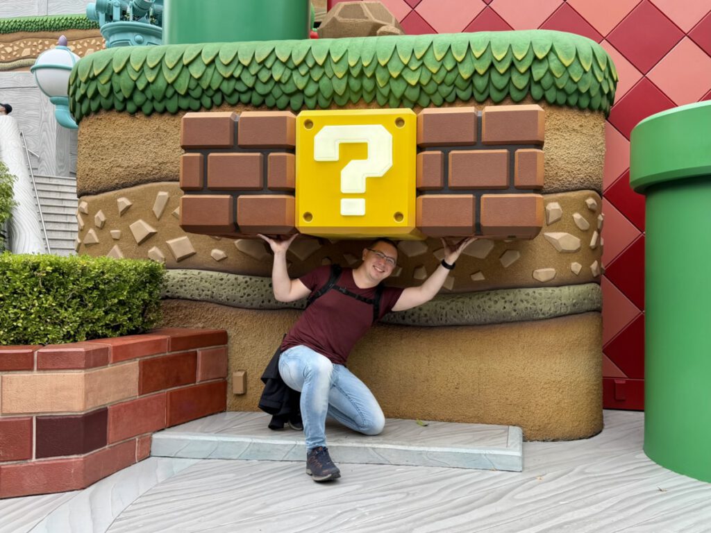 Am dritten Tag unserer Reise zog es uns in die Universal Studios Japan. Dank einiger YouTube-Videos wussten wir halbwegs, worauf wir uns einlassen, und verzichteten auf große Überraschungen. Der Wecker klingelte schon um 05:00 Uhr, und um 06:00 Uhr verließen wir das Hotel in Richtung Metro. Kurz nach sieben erreichten wir die Studios – und wir waren bei weitem nicht die Einzigen. Die Szenerie war schon vor Parköffnung lebhaft, voller Gruppen, Vorfreude und Gedränge. Um 07:25 öffneten Check-in und Sicherheitskontrolle, doch erst gegen 08:15 Uhr durften wir wirklich los – Geduld war hier Pflicht. Unser klarer Fokus: der Themenbereich Super Nintendo World, eine Verwirklichung unserer Kindheitsfantasien rund um Mario, Luigi und Co. Gleich am Anfang stellten wir uns versehentlich in die Schlange von Donkey Kong, obwohl wir eigentlich zu Koopa’s Cup wollten – ein klassischer Fehlstart. Nach zwanzig Minuten Wartezeit brachen wir ab, füllten die Lücke mit einem schnellen Hotdog vom Stand und setzten unsere Erkundung in die bunte Welt von Peach, Toad und den Warp-Pipes fort.