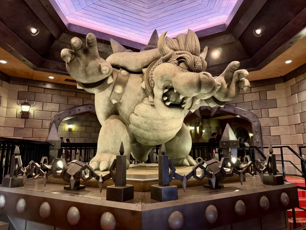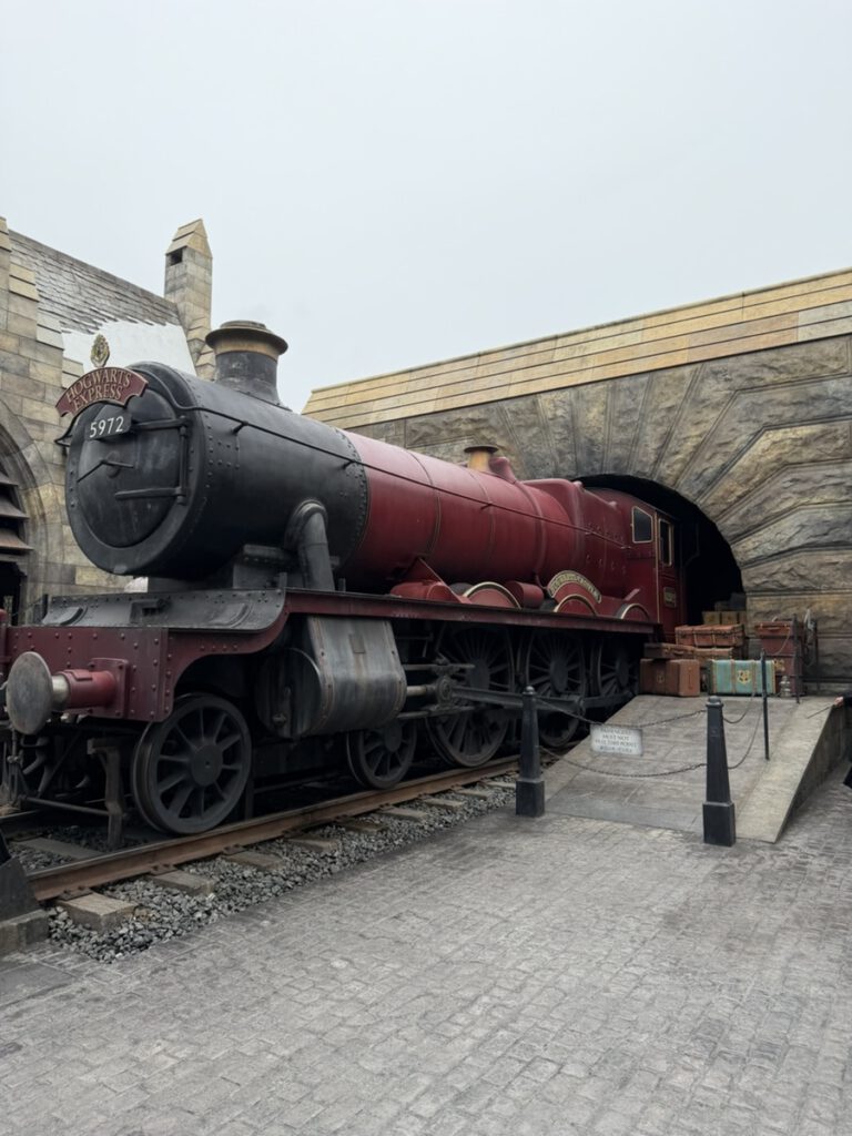 Schon bald wurde Regen angekündigt – Grund genug, die Single Rider Lane für eine der Hauptattraktionen zu nutzen: Mario Kart: Koopa’s Challenge. Normalerweise beträgt die Wartezeit hier über zwei Stunden, doch mit der Single Rider Option waren es am Ende knapp 60 Minuten. Die Fahrt selbst war das Warten absolut wert: ein AR-Dark-Ride, bei dem man mit einer Spezialbrille direkt ins Spielgeschehen katapultiert wird. Power-Ups, Bananenschalen, blinkende Items und die Konfrontation mit Bowser selbst – alles in einer Mischung aus Projektionen, echten Kulissen und vibrierenden Wagen. Wer mit Mario Kart aufgewachsen ist, fühlt sich hier sofort wie im Spiel. Zwischendurch lockten die ersten Shops, und wie sollte es anders sein – die ersten Souvenirs wanderten direkt in die Tasche. Danach ging es für uns weiter in den Harry-Potter-Bereich. Wir schlenderten durch King’s Cross, liefen nach Hogsmeade und staunten über die detailgetreuen Geschäfte der Winkelgasse. Das Highlight war das Schloss Hogwarts, das majestätisch über dem Themenbereich thront und als Kulisse alleine schon atemberaubend ist. Die großen Fahrattraktionen dort ließen wir wegen der 100–120 Minuten Wartezeit links liegen, aber allein das Ambiente machte den Besuch besonders – ein Eintauchen in die Zauberwelt, wie sie sonst nur auf der Leinwand existiert.