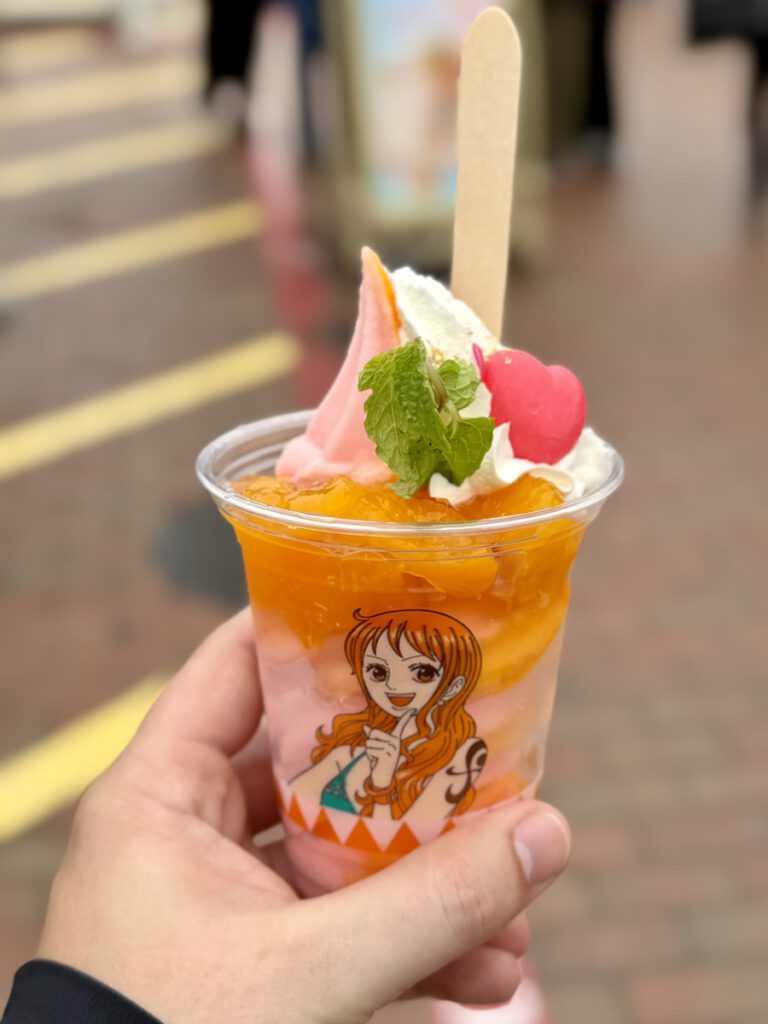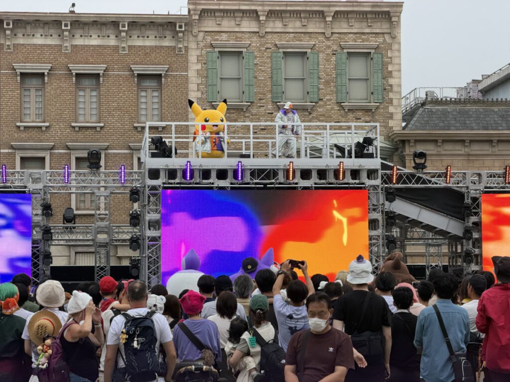Weiter führte uns der Weg in den Jurassic Park. Gleich zu Beginn begegneten wir einer kleinen Show mit riesigen Dinosauriern, die sich durch die Menge bewegten – ein witziger, immersiver Moment, bei dem die japanischen Besucher völlig aus dem Häuschen waren. Danach wagten wir uns in die Schlange von „Jurassic Park: The Ride“. Nach knapp 50 Minuten saßen wir in den überdimensionalen Booten mit 24 Plätzen und glitten durch eine tropische Landschaft voller detailreicher Dinos. Die Fahrt kombiniert Animatronics, Szenen aus den Filmen und ein dramaturgisches Finale – der große Drop aus 25,9 Metern Höhe (85 Fuß). Dabei wird wirklich jeder nass, außer diejenigen, die sich für 500 Yen mit einem Poncho geschützt haben. Ich gehörte nicht dazu! Nachdem wir unsere großen Highlights abgehakt hatten, erkundeten wir noch die kleineren Bereiche wie One Piece, Minions oder Detektiv Conan. Die Welten waren bunt, schrill und teils schwer einzuordnen, aber dennoch unterhaltsam. Mit einigen Souvenirs im Gepäck und der Steuererstattung über den Tax-Free Account endete unser Parkbesuch. Wettertechnisch hatten wir Glück: Mit 26 Grad, bewölktem Himmel und leichtem Regen war es angenehm, bevor für den nächsten Tag 50 Liter Regen angekündigt waren.