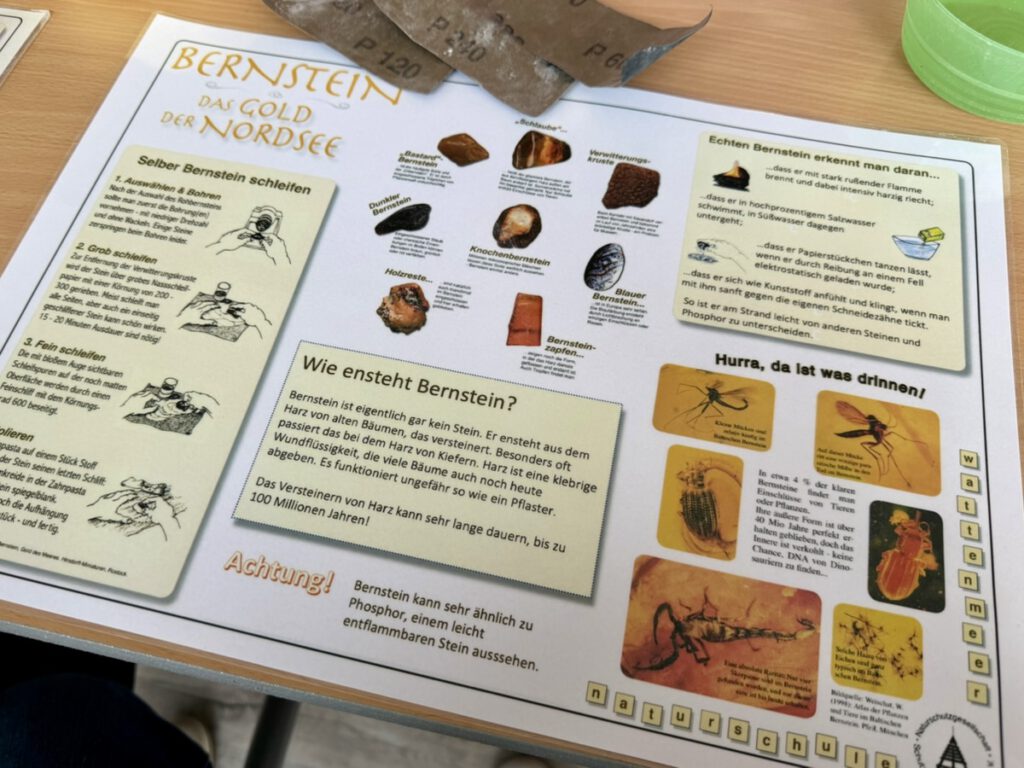 Donnerstag (12.03.26) – Spaziergang, Bernstein und ein letzter Abend: Der Donnerstag begann direkt aktiv: Nach einem ausgiebigen Frühstück sind wir zu einem großen Spaziergang aufgebrochen und haben gut vier Kilometer entlang des Deichs zurückgelegt. Der Wind war weiterhin kräftig unterwegs, typisch Nordsee eben, aber die Sonne hat alles gegeben und den Vormittag richtig angenehm gemacht. Zur Mittagszeit waren wir wieder im Apartment angekommen und haben uns eine Kleinigkeit zu essen gemacht. Danach sind wir unserer aktuellen Netflix-Serie Ghosts verfallen – perfekte leichte Unterhaltung ohne großes Drama. Zwischendurch durfte natürlich auch unsere mittlerweile feste Urlaubstradition nicht fehlen: ein paar Rennen in Super Mario Kart World, bei denen wir uns weiterhin ehrgeizig gemessen haben. Am Nachmittag stand dann noch ein kleiner Bummel durch die Innenstadt auf dem Programm – schließlich musste auch das tägliche Eis noch erledigt werden. Gegen 15:45 Uhr sind wir schließlich bei der Stadtbibliothek angekommen, wo ein etwas ungewöhnlicher Programmpunkt auf uns wartete: ein Kurs zum Bernstein schleifen. Nachdem ich die Uhrzeit falsch notiert hatte, sind wir auf dem direkten Weg zum Workshop gegangen (mit einigen Minuten Verspätung!). Wir wussten vorher ehrlich gesagt nicht genau, was uns erwartet, aber die örtliche Touristik hat sich hier wirklich eine schöne Idee einfallen lassen. Bernstein wird oft auch als „Gold der Ost- und Nordsee“ bezeichnet und ist eigentlich kein Stein, sondern fossiles Baumharz, das vor Millionen von Jahren entstanden ist. Durch Wind, Wellen und Strömungen wird er gelegentlich an den Stränden der Nordseeküste angespült. Die Stücke wirken im Rohzustand oft unscheinbar, doch durch Schleifen und Polieren kommt die warme, honigfarbene Struktur erst richtig zum Vorschein. Manche Bernsteine enthalten sogar kleine Einschlüsse – etwa Insekten oder Pflanzenreste –, die seit Millionen Jahren konserviert sind. Wir haben gelernt, wie man die Oberfläche vorsichtig formt, glättet und anschließend poliert, bis der Stein seinen typischen Glanz bekommt. Mit unserem selbst geschliffenen Bernstein als kleines Souvenir sind wir später zurück zum Hotel gelaufen, haben schon einmal die ersten Sachen wieder gepackt und uns dann auf den letzten Abend eingelassen. Der bestand aus gutem Essen, einem kurzen Besuch in der Hotel-Sauna und schließlich dem Finale unserer Netflix-Serie – ein ziemlich entspannter Abschluss für einen rundum gelungenen Kurzurlaub an der Nordsee.